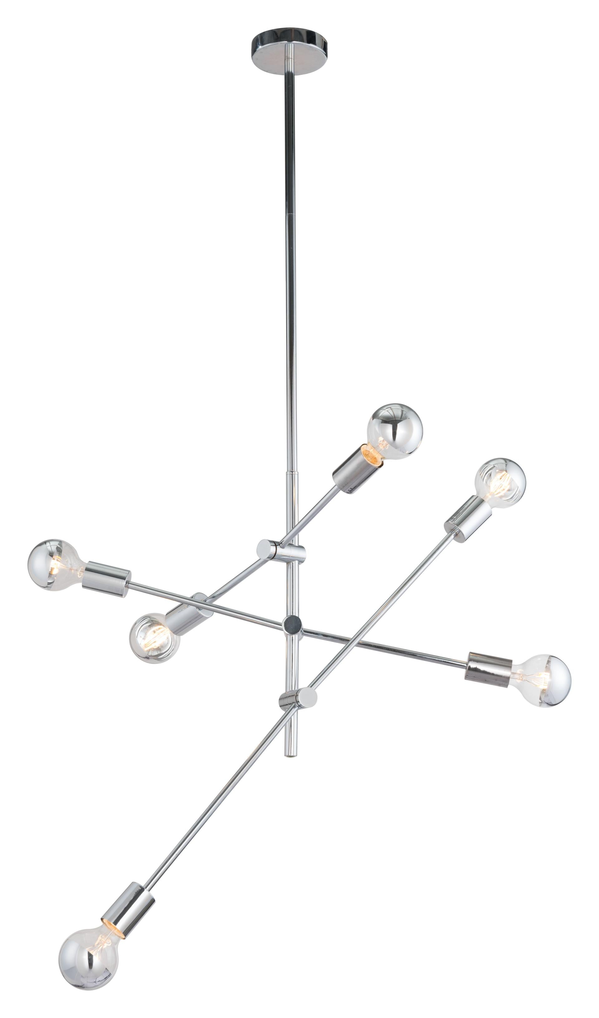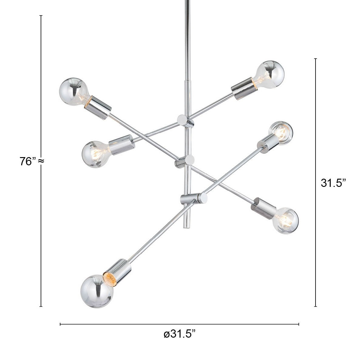 This Labyrinthine Six Light Ceiling Lamp is an artistic, contemporary lighting design, perfect for any modern space. Each arm extending outwards is adjustable to meet your needs and the vibe that you are going for. You can rely on this lamp to illuminate any space with its chrome finish and unique styling. Try it out in your kitchen, dining or lounge area. 76.0” H x 31.5” W x 31.5” D